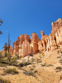 Далее наш путь привел нас в Брайс-Каньон, где мы прокатились по тропе *The Rimtrail, наслаждаясь величественными пейзажами и красотой окружающей природы. Пройдя всего несколько километров пешком, мы осознали, какая удивительная сила заключена в этих грандиозных образованиях природы. Аж дух захватывает.
